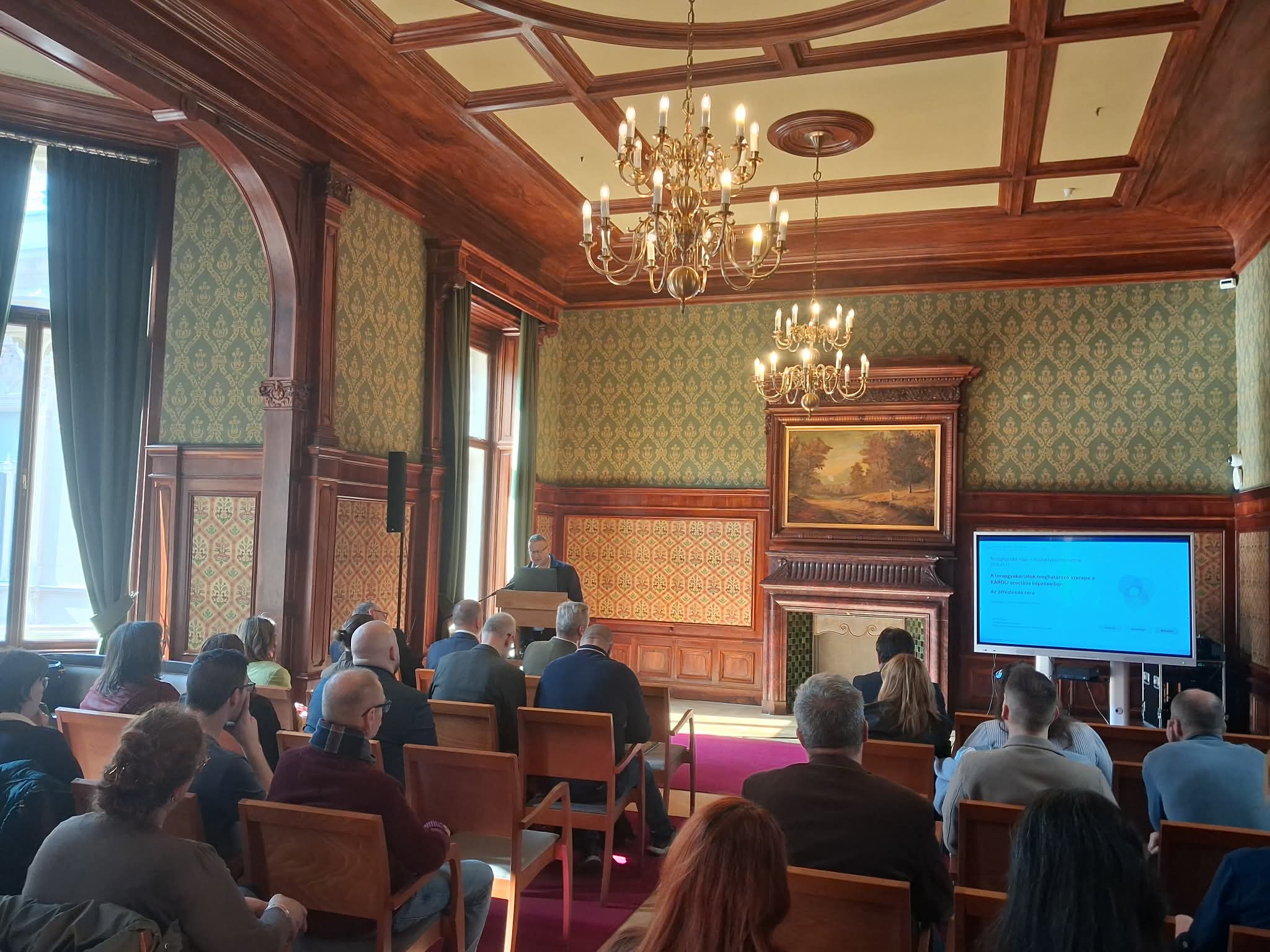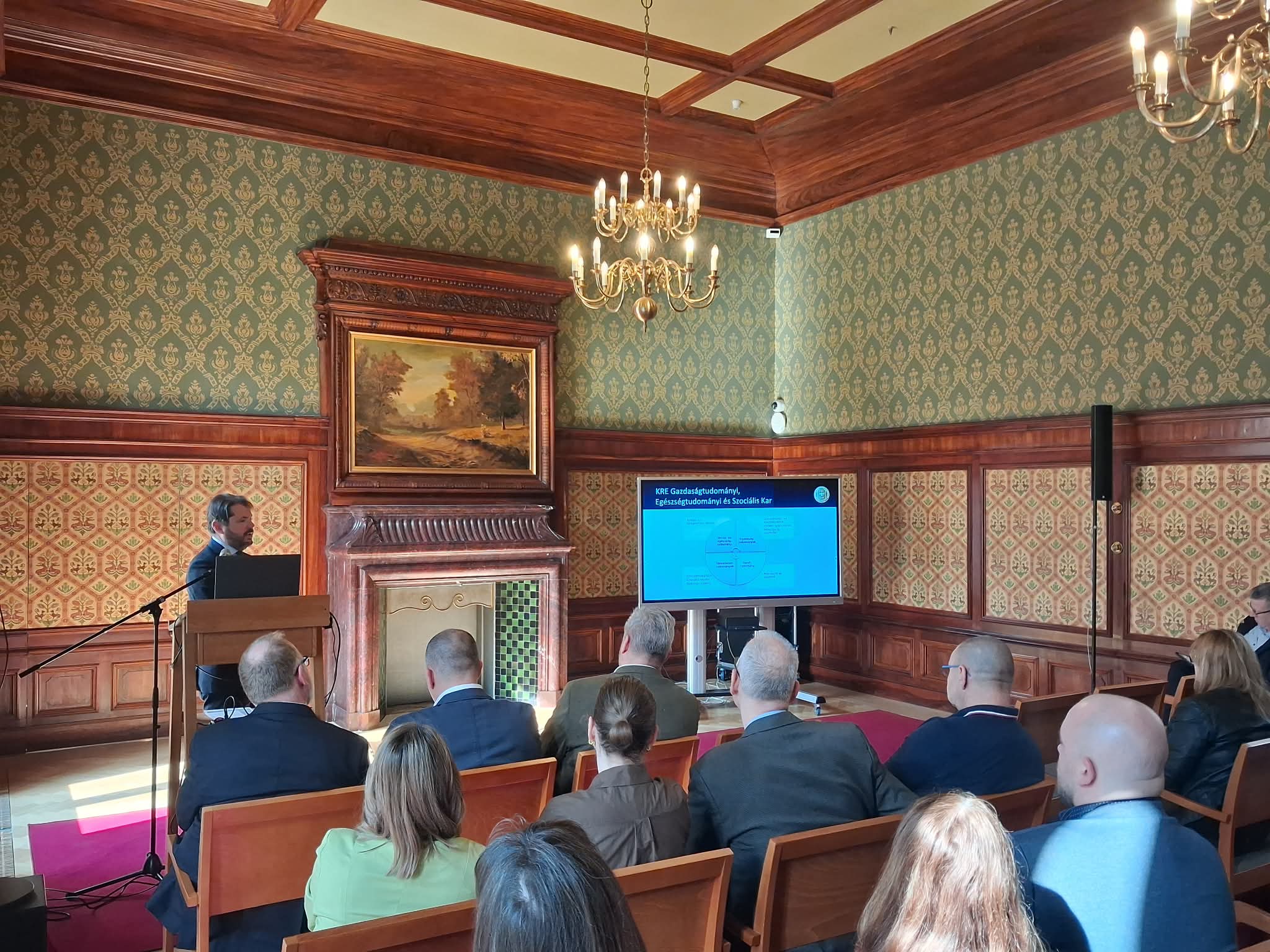 A Gazdaságtudományi, Egészségtudományi és Szociális Kar, azon belül a Szociális Munka és Diakónia Intézet 2026. március 11-én Tereptanári Műhelykonferencia címmel szervezett szakmai találkozót a Károlyi–Csekonics-palota Szivarszobájában. A rendezvénynek egyetemünk központi épülete adott otthont, ezzel is méltó és illő keretbe foglalva az alkalom szakmai jelentőségét, valamint a terepintézményekkel való együttműködés fontosságát.